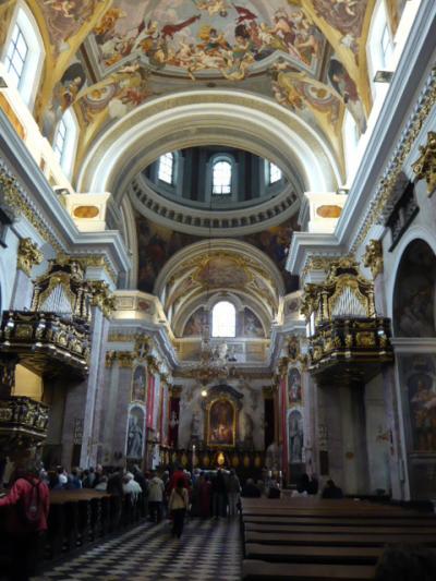 内部はちょっと暗めですが、ここは床も天井画も良い感じで、