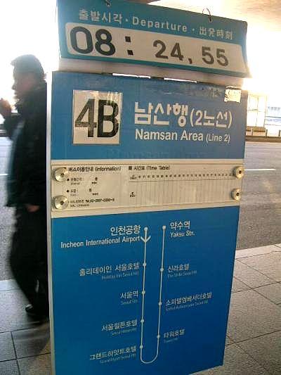 仁川空港を出ると明洞方面はどのバス停かと探したら「4B」でした