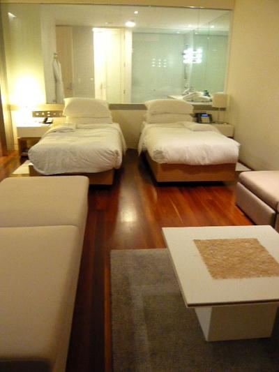 部屋のすぐ左手がバスルームで、中はガラス張で広いけどまる見え(^ ^;