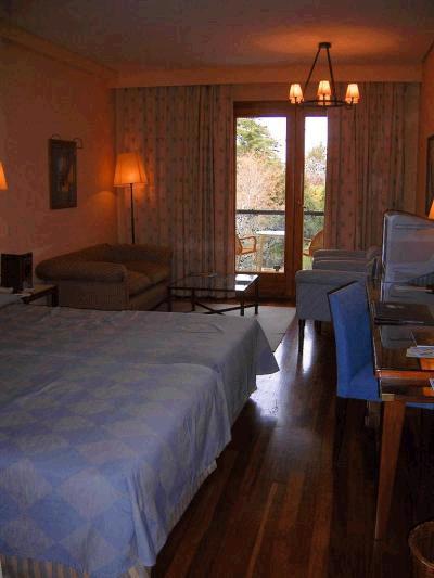 セゴビアでも「パラド−ル」に宿泊しました。近代的リゾ−ト風の造りになっていて「全ての部屋が街を見渡せる様に」細長〜い建物の片側にだけ部屋が位置するタイプで、地階にはプ−ルやジムも完備されている様でした。