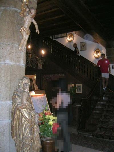 でも諦めの悪い私は「奥の手」を使ってなんとかホテルに泊ったんですが、部屋はシンプルで質素でした。元々が修道院ですから、その面影を残す内部を見学しましたが、手入れの行届いた小さな中庭や、この修道院の由来を刻んだ大理石の床や、中世に迷込んだ様な数々の鎧や道具箱etc・・素晴らしいホテルには「美術館に匹敵するもの」を感じてしまいます♪