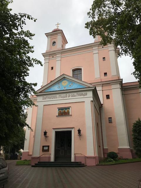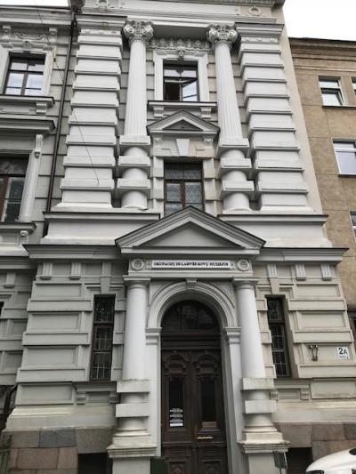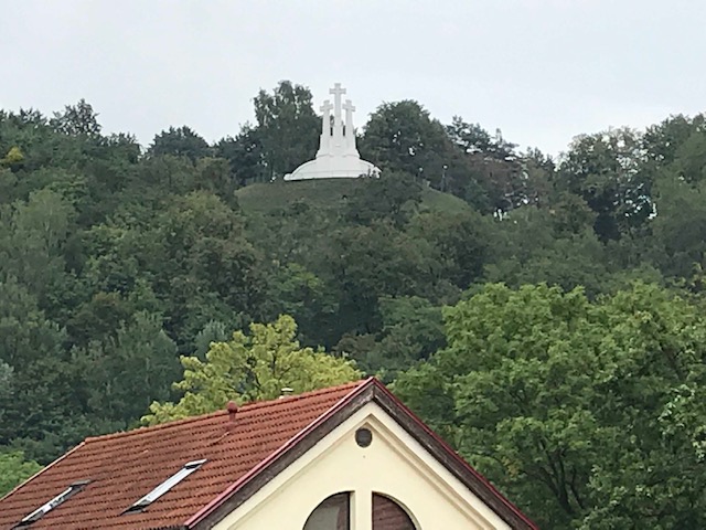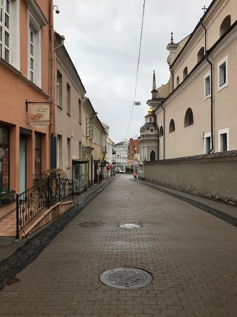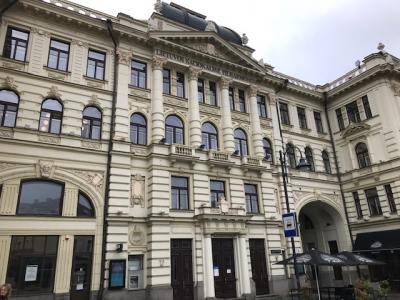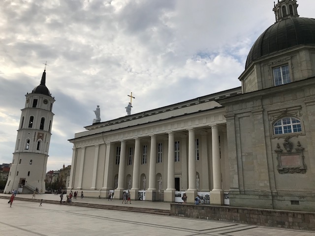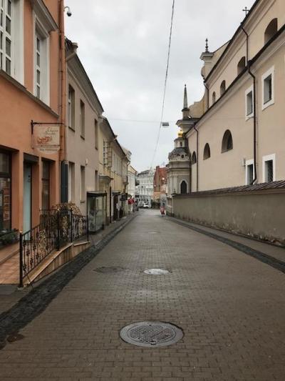 ヴィリニュスの旧市街の入口の夜明けの門をくぐると右手に聖テレサ教会、その先にピンクの聖霊教会、その先に聖三位一体教会と夜明けの門通りを北上して行きました。次は市庁舎がある広場に出るはずでしたが、その前にこのリトアニア 国立フィルハーモニーの建物を見つけました。かなり立派な建物です。交響楽団にこんな立派な建物とは文化の高さを感じました。