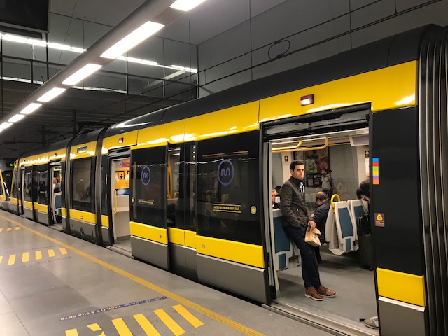 少し遠回りになりますが、どうしてもマルマライに乗ってみたかったので、イエニカプまで地下鉄で移動し、そこでマルマライに乗り換えてユスキュダルまで移動しました。ちょうどこの区間はボスポラス海峡の下を潜るので乗ってみたかったのです。実際に乗ってみるとボスポラス海峡の下を潜っている感覚はありませんでした。まだ新しいのできれいな車両です。