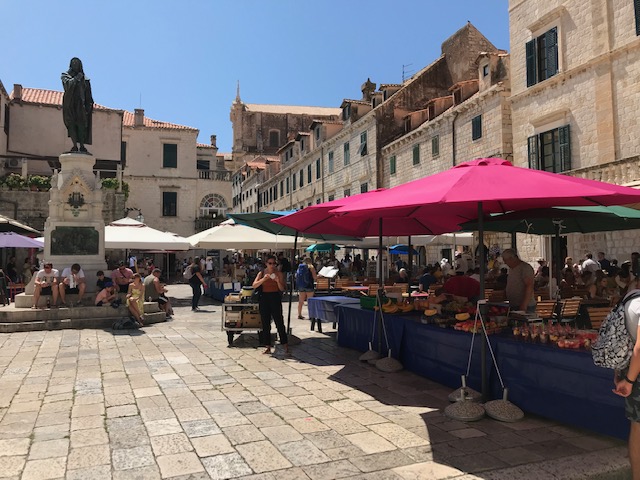 聖ヴラホ教会と大聖堂の間にある細い路地を入っていくと、このグンドゥリッチ スクエアがありました。広場の真ん中にクロアチアの詩人のグンドゥリッチの銅像があります。多くのお店が出ていて、とても賑やかな広場でした。ほとんどグンドゥリッチの銅像が目立たないぐらいの活況でした。