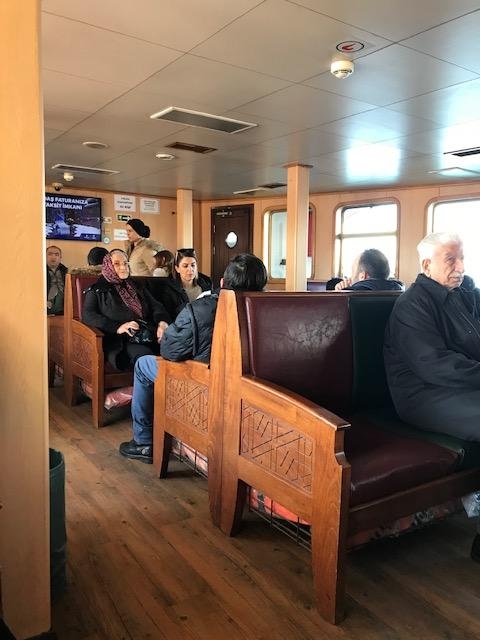 カドキョイからエミニョニュまでの区間で利用しました。アジア側のカドキョイからヨーロッパ側にはいろいろなルートのフェリーが出ていましたが、一番早い時間がエミニョニュへ行だったので、これに乗船しました。大量の乗客がいました。マルマライも走っていますが、まだまだフェリーが人気の様です。
