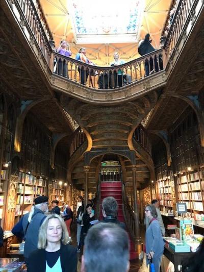 世界一美しいと言われている本屋さんです。ポルトの中心部から少し離れて居ますが、十分に徒歩圏内です。通常に営業している本屋さんですが、中に入るには整理券が必要で、3軒ほど離れた場所の地下で販売して居ます。5ユーロでした。このバウチャーは本を買う時の割引券として使えるようですが、スペイン語の本を買うことはありません。商店の中は確かに美しかったですが、観光客でごった返して居ました。