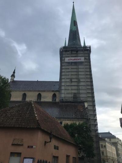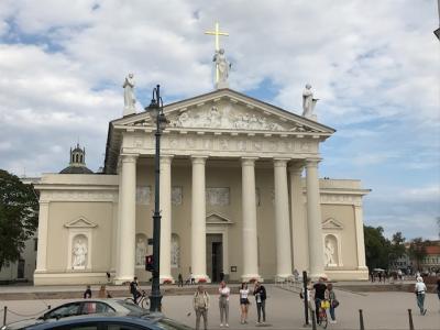 ビリニュス観光で宿泊したノボテル ビリニュス ホテルの目の前のゲディミノ大通りを進んでいくと、まずは鐘楼が見えてきました。更に進むと白亜の大聖堂が見えてきました。あちこちの大聖堂を観てきましたが、こんなに白い大聖堂は初めてです。とても清楚な感じがしました。
