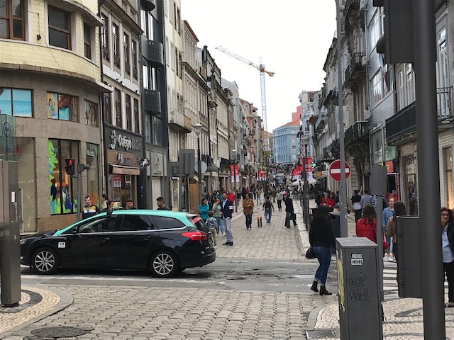 リスボンのオリエンテ駅から列車で約3時間でポルトのカンパニャン駅に到着し、地下鉄に乗り換えてホテルがあるボルハオ駅へ向かいました。地上に出ると、全面ズレージョが描かれたアルマス礼拝堂がありました。そこぁらホテルまでは、この賑やかなサンタ カタリーナ通りを歩いて行きました。ファッション関係のお店が多く、若者で賑わっていました。