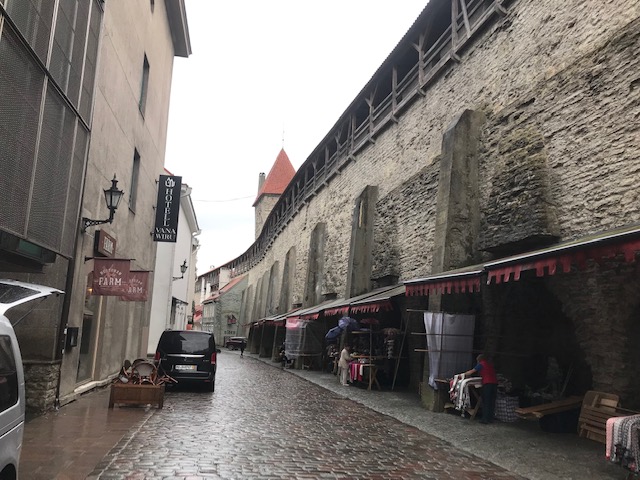 エストニアの首都タリン の旧市街の南側の入口のヴィル門から旧市街に入り、すぐ右に曲がると北端にある太っちょマルガレータに行くことができます。右に曲がってすぐにこのセーターの壁があります。その先は右側に城壁が続いていて、そのまま進むとこのヘレマン塔があります。ここから城壁に登ることができます。