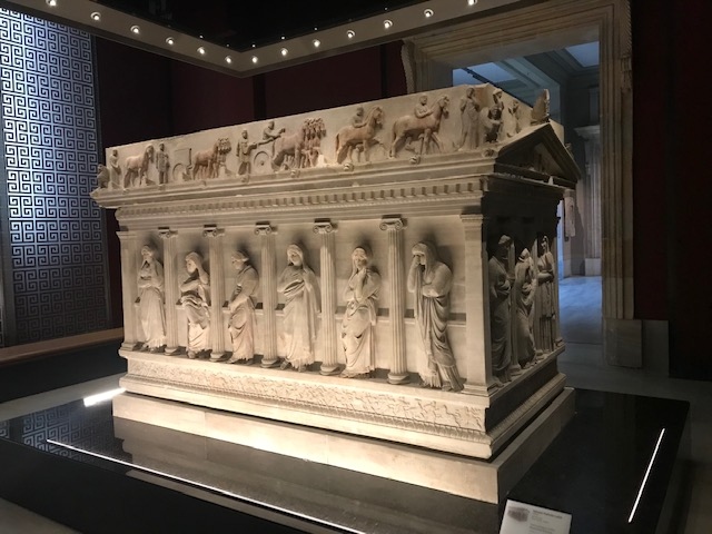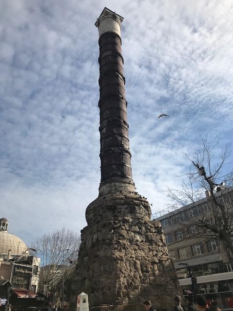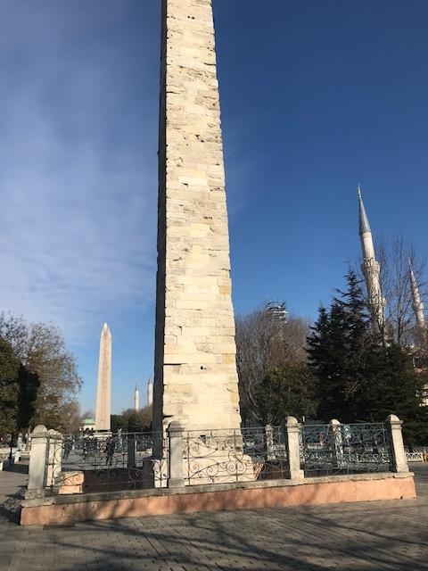 ブルーモスクのそばの広場ヒッポドロームには2本のオベリスクがあります。トラムの方向からすると奥にあるのがこのコンスタンティヌス7世のオベリスクです。手前のテオドシウス1世のオベリスクは文字が書いてあったりして興味深かったですが、こちらはシンプルなただただ塔でした。