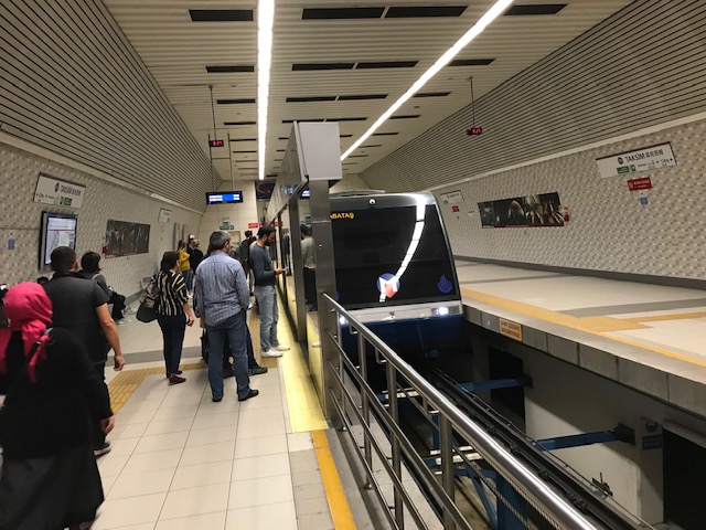 タクシム広場からドルマバフチェ宮殿があるカバタシュ駅までこのフニキュレル (地下ケーブル)を利用しました。タクシム広場からだと、海へ向かって坂を下って行く形になります。1駅だけで5分も乗らずにカバタシュ駅に到着しましたが、坂道を歩くと大変なんでしょうね。