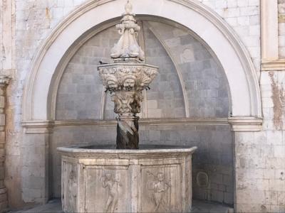 ドブロブニク城壁めぐりをするためにピレ門から城壁内に入りました。目の前にオノフリオの小噴水があり、後ろを振り返ると城壁への入口とこのフランシスコ会修道院が並んでありました。もう城壁のチケット売り場に行列ができていたので、フランシスコ会修道院へは行かずにすぐに行列に並びました。城壁の後に中に入ろうとしましたが、この日は中に入れませんでした。薬局に行きたかったのに残念でした。