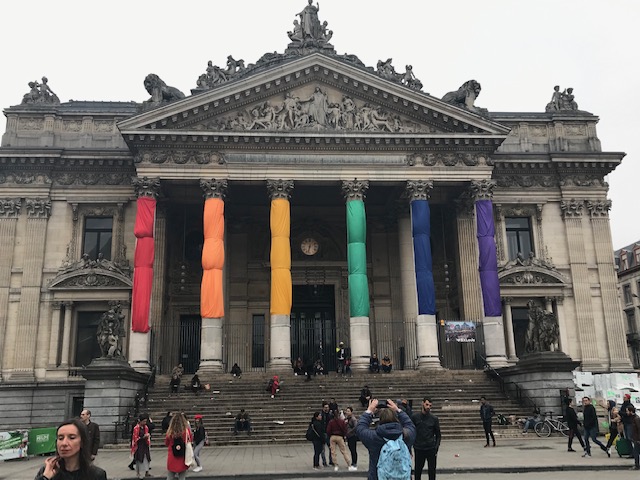 ブリュッセルのグランプラスを見た後に歩いて聖カトリーヌ教会へ向かう途中にあった建物です。大きな建物があるなと思って調べてみたら証券取引所でした。日本人の感覚では、こんな建物が証券取引所だとは思いもよらないと思います。西洋の歴史を感じました。