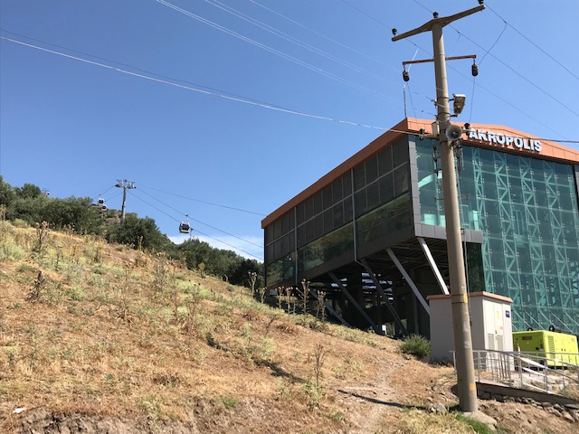 ベルガマのアクロポリスはかなり高台にあるので、このケーブルカーに乗っていくと便利です。往復で30トルコリラでした。そんなに客が多いわけではないので、行った時には止まっていましたが、客が来ると動かすみたいです。