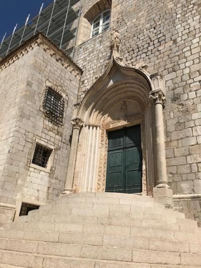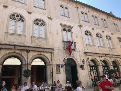 ドブロブニク旧市街のメイン広場のルジャ広場にある聖ヴラホ教会の聖ブラヴォ教会の前にある建物です。レストランが入っていて客で賑わっているので、レストランの建物だと思ってしまいますが、市庁舎だそうです。とても市庁舎だとは思えませんでした。