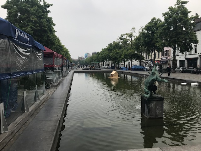 元々はブリュッセルの内港を埋め立てた場所だそうで、その名残なのか細長い池のようなものが残っています。池の両側にはレストランが並んでいます。奥の方には何かのモニュメントがありました。名前の通り聖カトリーヌ教会が近くにあります。