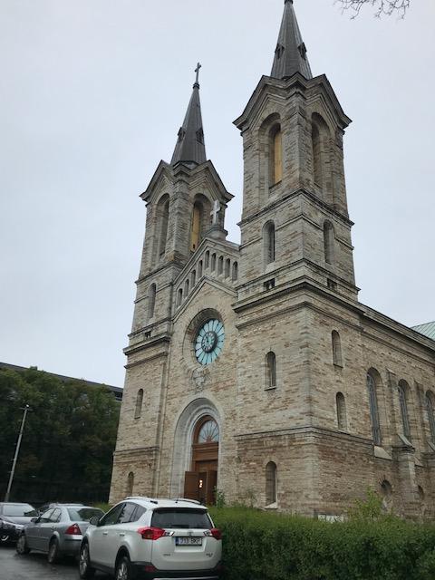 タリンの城壁の中の旧市街から外に出て占領博物館の近くにある教会です。この辺りにはほとんど観光客もいませんでした。道路に囲まれた陸の中洲のような場所に建っています。観光名所としてはあまり有名ではないようですが、2つの尖塔を持つかなり立派な教会でした。