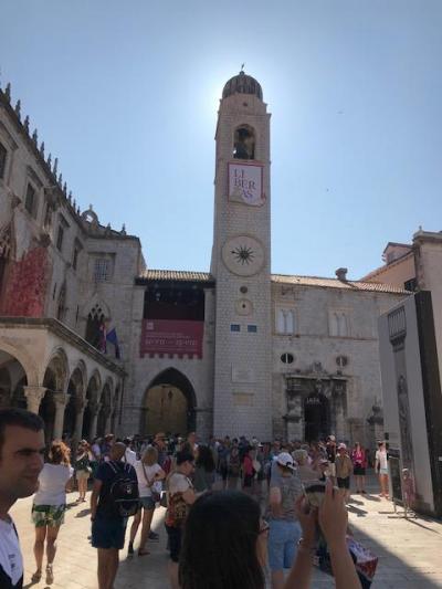 ピレ門を入ってすぐの場所にオノフリオの大噴水があります。左手にはルジャ広場へ続くプラッツァ通りがありますが、その先にこのBell Towerが見えます。結構目立つので、あそこにルジャ広場があるとわかります。最初は時計台かと思いましたが、近づいてみると先端に鐘がありました。
