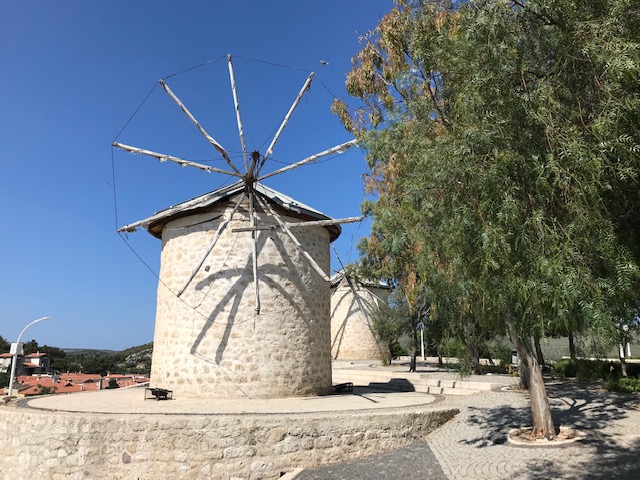 トルコのイズミール から車で1時間ほどのリゾート地チェシメに行く途中にあるアラジャティという街の中にある公園です。チェシメはトルコの中でも有名なリゾート地ですが、このアラジャティも素敵な街でした。公園は少し高台にあり、そこにあるトルコ式の風車がとても素敵でした。今は使われていないようですが、独特な形をしていました。