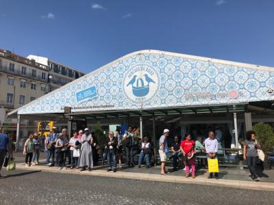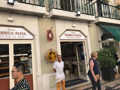 リスボンの旧市街の中心地、ロシオ広場の近くにある有名なお店です。最初に隣のパステラリア カーサ ブラジルというパン屋さんで、タルトとコーヒーでお茶をしたので、ここでは持ち帰り用にタルトを購入しました。かなり混雑していました。後で食べましたが、ふわふわで美味しかったです。