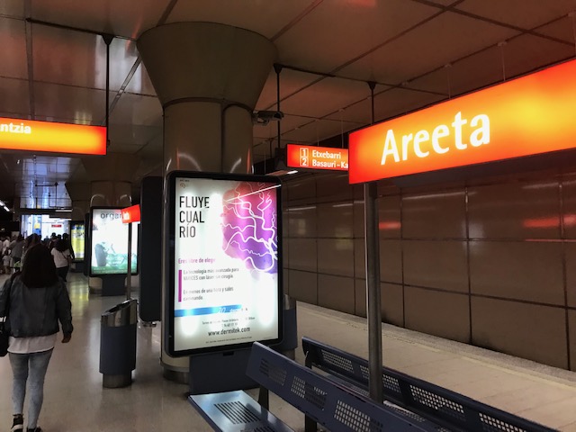 ビルバオのビスカヤ橋に行くために地下鉄を利用しました。市の中心部にあるアバンド駅から約30分で到着です。郊外に出ると地下ではなくて地上を走ります。ビスカヤ橋はこの駅からは見えませんが、歩いて10分ほどで到着します。帰りは鉄道でビルバオに戻りました。