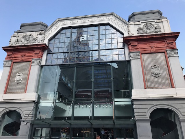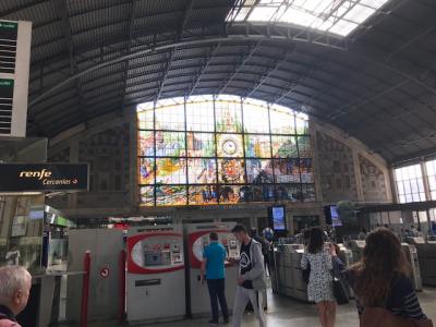 ビルバオからビスカヤ橋まで、行きは地下鉄、帰りは国鉄で往復しました。国鉄の方が本数が少ないですが、川沿いに駅があるし、ビスカヤ橋のゴンドラで対岸まで来たので、そのまま鉄道で帰って来ました。ホームに到着すると、見事なステンドグラスがあり、その美しさに驚いてしまいました。