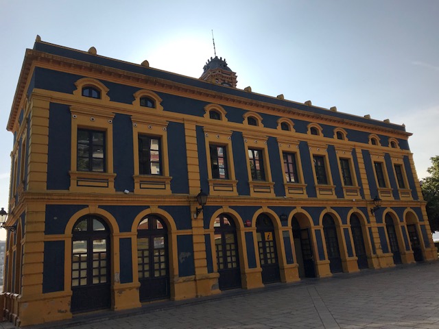 ビルバオ市内から地下鉄でビスカヤ橋へ移動しました。 ビスカヤ橋 のゴンドラで対岸へ渡って河岸を国鉄駅の方に歩いて行くと、小さな公園がありますが、そこに宮殿のような建物があったので入ってみたら観光案内所でした。中はごく普通でしたが、外見はとても不思議な観光案内所です。