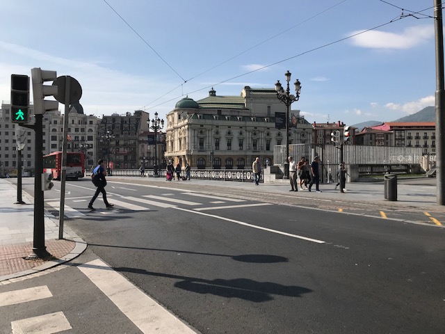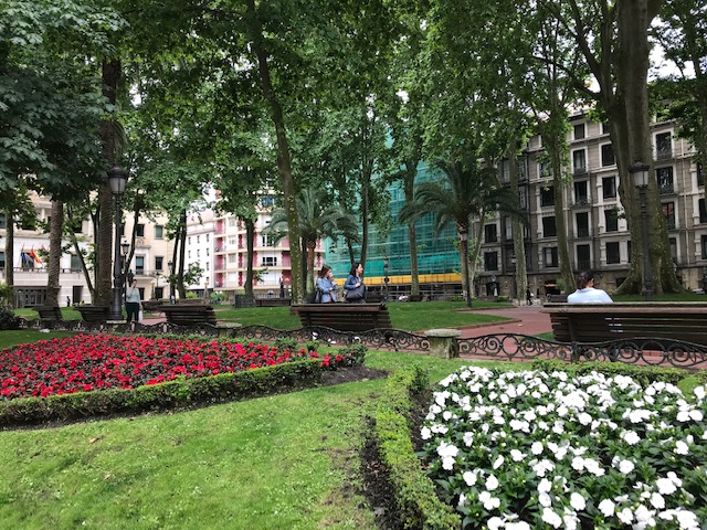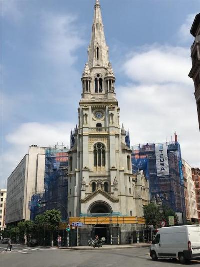 ビルバオの南側から、周りは素敵な建物が並んでいるモジュア広場を通ってグッゲンハイム美術館へ行きました。モジュア広場の先の右手に白っぽい塔のような教会が見えて来ました。観光地図には名前は乗っていましたが、詳細は分からず後で調べると1900年代初頭に建てられた新しい教会のようです。通りで新しく感じました。