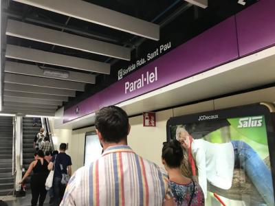 バルセロナの紫色のL2線の駅で、高台にあるムンジュイック城に行くために利用した駅です。この駅の近くにケーブルカーがあって、その後にロープウェイにのってムンジュイック城に行くはずでしたが、ケーブルカーが見つからず、結局歩いて行って大変な目に会いました。後で調べると、ケーブルカーは地下鉄の駅から連絡口があったようです。