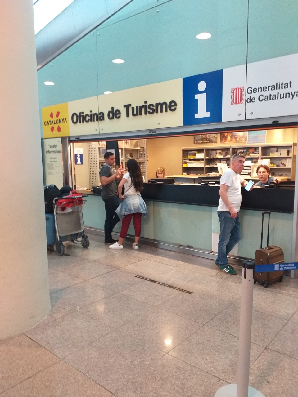 トルコ航空でイスタンブールからバルセロナ空港のターミナル1に到着しました。入国審査を終えて外に出ると、この観光案内所を見つけたので観光地図をもらいました。ここで地下鉄などの1日券なども販売していますので、自動販売機が苦手な方はここで買うのも手だと思います。