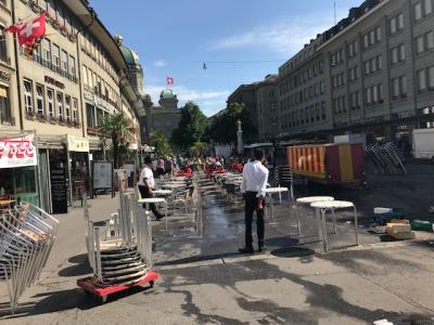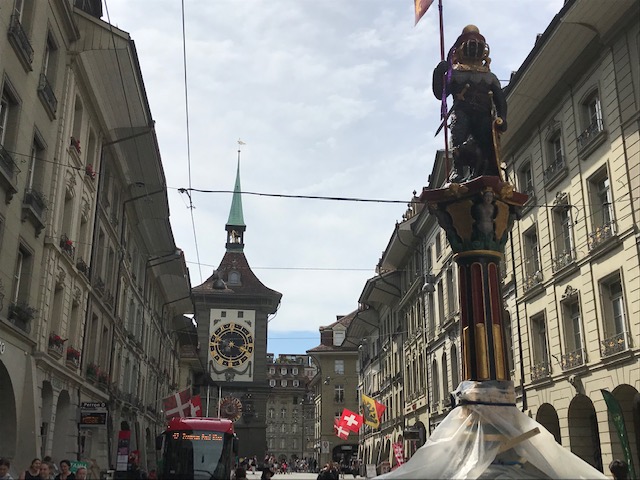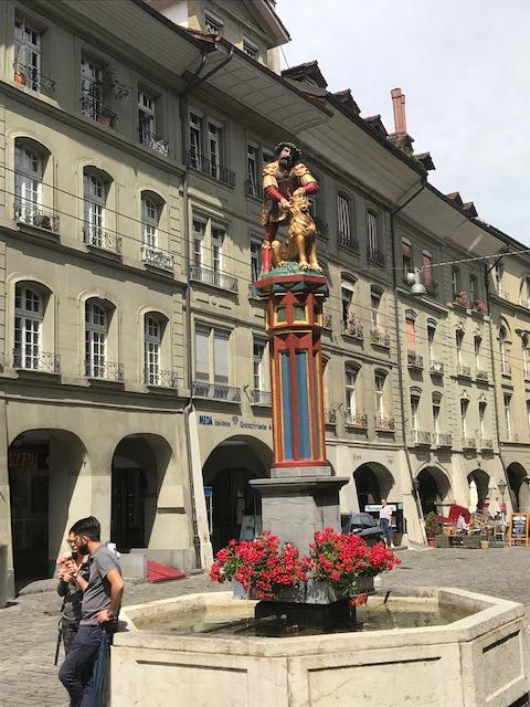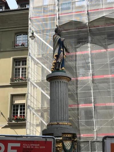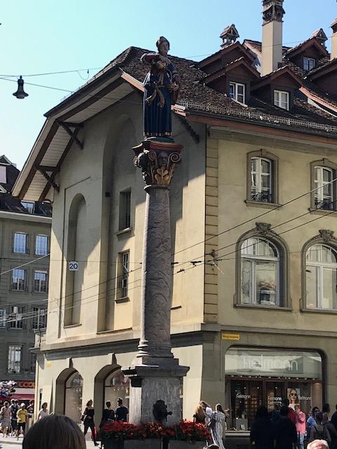 時計台と牢獄等を結ぶトラムが走るマルクト通りにある泉の一つです。マルクト通りにはいくつかの泉がありますが、トラムが頻繁に走っているので、なかなかじっくりと泉を鑑賞するのが難しいです。このアンナ・ザイラーの噴水は、私財を投じてベルンに病院を建てた女性を讃えて作られたそうです。