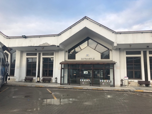 アンカラ のバスセンターからメトロ社の高速バスに乗って3時間でサフランボル のバスセンターに到着です。サフランボルの旧市街に行くにはこのサフランボル のバスセンターから乗合バスでクランキョイという新市街まで行き、さらにそこで乗合バスに乗り換えます。高速バスは裏側に到着するので、バスセンター建物を横切って反対側に出ると、乗合バスが通る道に出ます。乗合バスは待っているわけではなく、通りすがるバスに手をあげて止めてから乗りました。