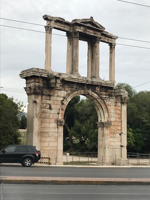アテネ観光で宿泊したアマリアホテルからパルテノン宮殿があるアクアポリス まで歩いて行く途中に見つけました。とても交通量が多い道のそばに建っています。とても立派な門でした。この門の奥にゼウス神殿が建っていますが、この門を通ってゼウス神殿の敷地の中には入れません。