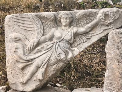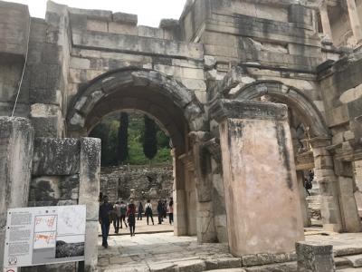 世界遺産エフェス遺跡の中心的な建物のケルスス図書館を正面に見ると右側にこのマゼウスとミトリダテスの門がありました。この門をくぐるとアゴラに出ます。看板を見るとアゴラの南門と書かれていました。ケルスス図書館のそばにあるので目立ちませんが、結構立派な門だと思いました。
