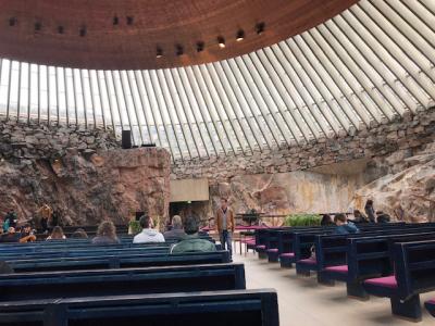 フィンランド国立博物館から歩いて行きました。10分ほどでしたが、この方向から歩いて行くと入口が反対側なのでわかりにくかったです。そんなに期待して行った訳ではないのですが。行ってみてびっくりしました。こんな形の教会は初めてです。協会内に入るには3ユーロです。丸い丸い石でできた教会です。