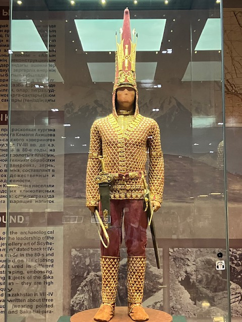 ハズィレット・スルタン・モスクや平和と調和の宮殿、独立広場の近くにある博物館で、中央アジア一番の規模を誇る博物館だそうです。入館料は500KZTほどと安いと聞いていましたが、2700KZTでした。チケット売り場のお姉さんの説明では700+1000+1000と言っていたので、特別展や写真撮影代などもコミコミなのだと思います。3階まで展示場になっていて、各部屋がテーマを持って展示しています。やはり見所はゴールデンマンのところで、とても興味深かったです。