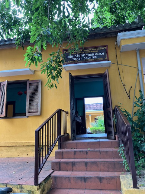 ホイアンの旧市街にあるお寺や旧家などは有料と無料が混ざっています。有料の場所は1ヶ所毎に支払うのではなくて、観光チケットというものを事前に購入して、そのQRコードをチェックしてもらう形式です。この観光チケットを売っているブースは数カ所にありますが、探すのは難しいです。一番わかりやすいのは来遠橋 (日本橋) の近くにあります。