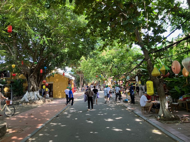 日本橋を挟んで東側がチャンフー通り、西側がこのグエンティミンカイ通りになります。ホイアン旧市街の見どころはチャンフー通りに固まっていますが、このグエンティミンカイ通りにもフーンフンの家やカムフォー寺などがあります。 チャンフー通りに比べて人通りが少ないので、ゆっくり旧市街の雰囲気を味わうことができました。