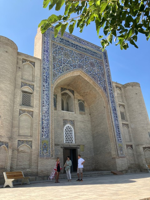 ラビハウズの西側に建っている宗教施設です。ラビハウズの周りには多くの宗教施設がありますが、そのうちの一つです。モスクではなくメドレセ(神学校)の跡地だと思うのですが、名前からだと分かりません。中に入るには有料ですが、お金を払ってまで入ることはないと思います。周りにあまり人はいませんでした。入口の青が素敵です。