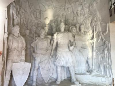 ティラナからバスに乗ってクルヤに到着しました。1時間ほどで着くはずが、途中渋滞していて1時間半ぐらいかかりました。バスを降りてからバザールを経由してクルヤ城に到着です。クルヤ白の中にこのスカンデルベグ博物館がありました。入館料は500レクです。入って直ぐにスカンデルベグの像があります。アルバニアの歴史を展示しています。