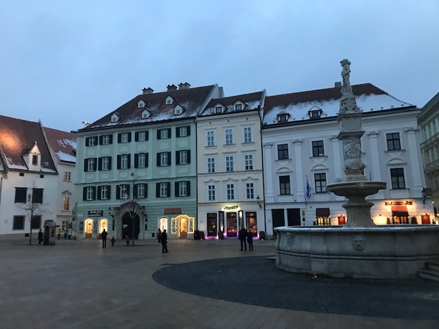 ウィーン空港からブラスチラバまでバスで移動しました。45分でブラスチラバのSNP橋のたもとのこのバスターミナルに到着しました。まずこのUFOの塔が目に飛び込んできました。ブバスを降りてトラムに乗り換えてホテルに向かいましたが、バスターミナルのそばにはブラスチラバ城や旧市街もあるので、荷物が邪魔でなければ、そのまま観光できます。