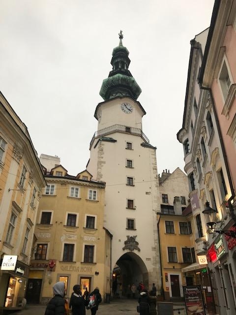 スロバキアの首都ブラチスラヴァ中央駅近くのホテルからミハエル門がある旧市街までトラムの1号線で移動しました。ミハエル門に近づくと、このObchodna Streetをトラムが通ります。左右にはお店が並んでいて、1番の繁華街の様な気がします。ここは観光客ではなくて、地元の方が利用する繁華街です。