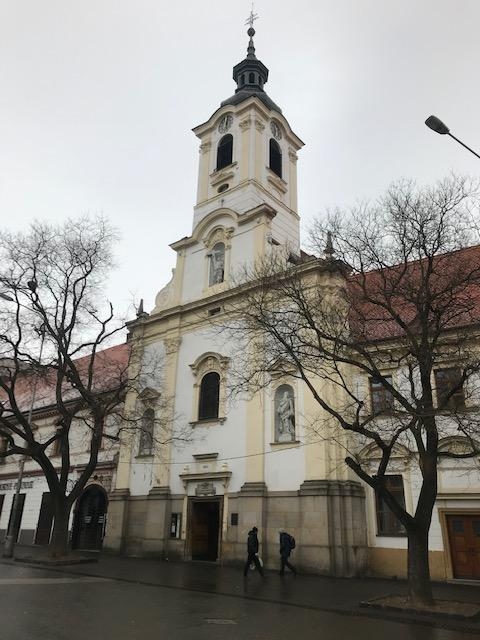 ミハエル門前の賑やかなミハルスカー通りから脇道に入って聖マルティン大聖堂に向かって行く途中にあった教会です。外見は派手ではないですが、意外と大きな教会でした。教会の中に入ってみましたが、中も質素な感じで逆に信仰の熱さを感じました。