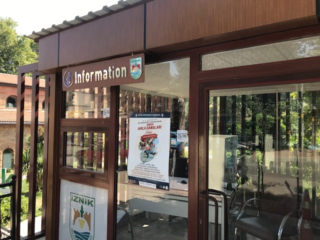 イズニックのメインの見どころのアヤソフィア ジャーミィのすぐそばにあります。イスタンブールからフェリーでヤロバ港に行き、それからミニバスで約1時間ちょっとです。ミニバスはどこでも乗り降り自由ですが、アヤソフィア ジャーミィ付近で降りると都合が良いと思います。その意味でもアヤソフィア ジャーミィ の近くに観光案内所があるのはリーズナブルです。