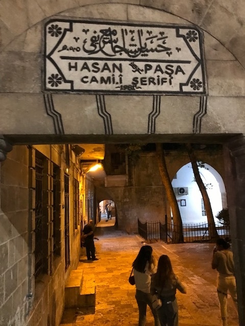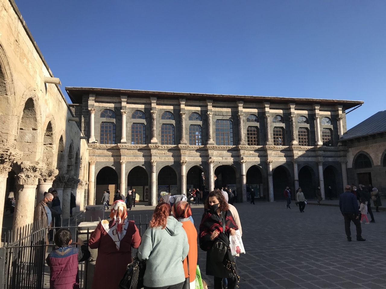 シャンウルファの最も有名な場所の聖なる魚の池の横に建っているモスクです。聖なる魚の池だけよりもこのモスクがあるためにかなり絵になる光景になっています。昼と夜の2回行きましたが、夜のライトアップは少し暗めでした。