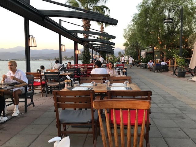フェティエに行った時にランチを食べたレストランです。海岸に近いカイ・ホテルに宿泊したのですが、そのすぐそばです。トルコ料理です。トルコ式のピザのピデを食べました。ランチ土器は空いていましたが、夜に近くを通ったら満員でした。