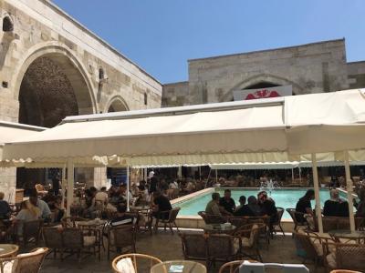 トルコ国内ではアフィヨンというとカイマックとロクムというお菓子がとても有名だそうです。このお店はトルコの食堂ですが、美味しいカイマックが食べれると聞いたので行ってみました。日本のカステラのような甘い生地をもっと甘いシロップに漬け込んだものに、カイマック(クリーム)が乗っていました。日本人はお茶なしでは食べれないほど甘いものですが、疲れていたのでちょうどよかったです。