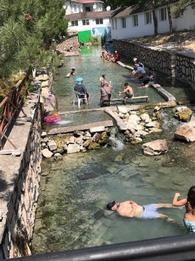 ドクターフィッシュがいることで有名な温泉です。シバスからバスで1時間ちょっとでカンガルに到着、そこからタクシーで20分ほどのところにあります。入場料は20リラでした。外の川と小さなプールの2箇所に魚がいます。想像以上に魚に皮膚を突かれると痛いです。