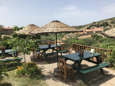 ソケのバスセンターからミニバスに乗って40分ぐらいの場所にあるギリシャ系の人々が作った石造りの家が点在するエスキ・ドーアンベイに行った時にお茶をしたお店です。ミニバスを降りて坂を登って行くとすぐの場所にあります。帰りのミニバスの時間までの時間つびしのために、ここでお茶をしました。エスキ・ドーアンベイが一望できます。