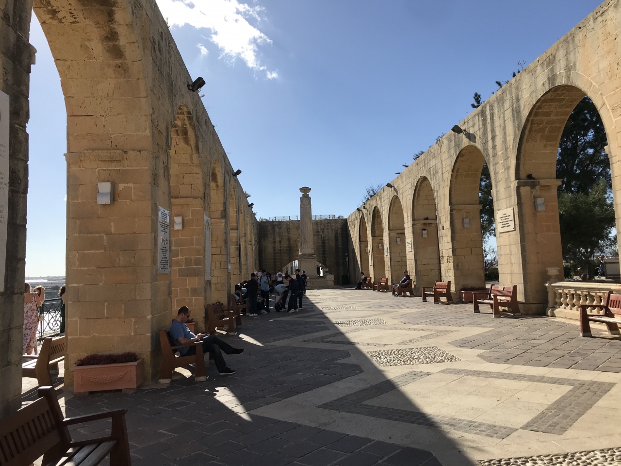 バレッタの旧市街のシティゲートからこのアッパーバラッカガーデンに行きました。ヴァレッタの旧市街は高い場所にあるため、このアッパーバラッカガーデンからはスリーシスターズの様子がとても綺麗に見えます。少し下のThe Saluting Batteryには大砲が並んでいます。ガーデン名前がついているように憩いの場でもあります。
